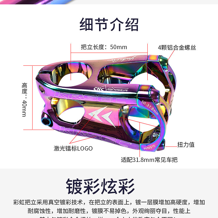 KRSEC Шоссейный горный велосипед, велосипедная ручка, сверхлегкий велосипедный вынос, подступенок, 50mm