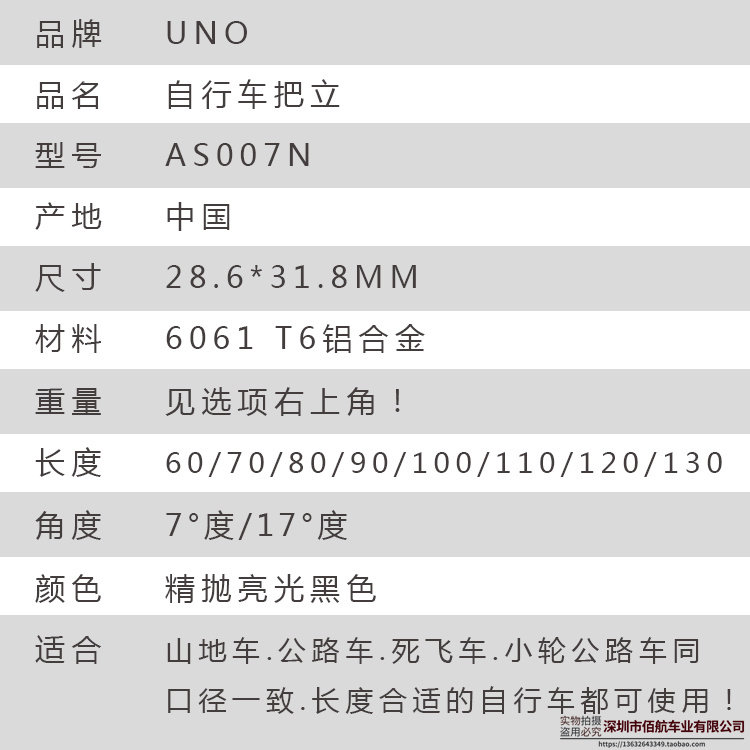 UNO Велосипедная ручка, велосипедный вынос, металлический глянцево-черный подступенок, 130mm