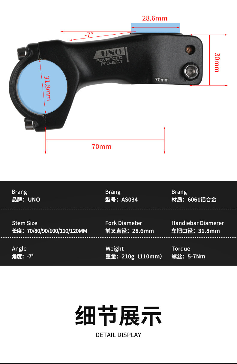 UNO Горный шоссейный дорожный велосипед, велосипедная ручка, велосипедный вынос, металлический подступенок, 120mm