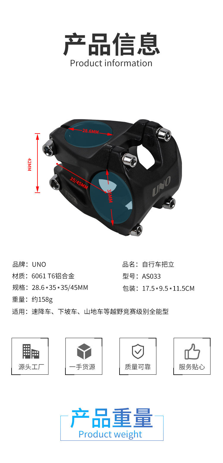UNO Горная велосипедная ручка, велосипедный вынос, подступенок, внедорожный тяжелый велосипед, 35mm, 3D