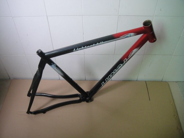 Полуглеродочный волокнный волокно Тайвань (10 000 талантов).Головная трубка длиной 125, а внутренний диаметр - 41.Внутренний диаметр средней трубы составляет 27,2.Верхняя длина трубки составляет 540 мм.На поверхности рамы есть небольшие царапины.Цвет замороженный черный и красный.
