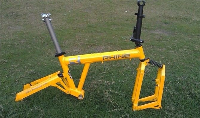Складной рукав каркаса включает в себя: рамка+передняя вилка+передние и задние ударные пружины+57 см. Утверждение поверхности головки. Можно отрегулировать подставку+быстрая разборка+анти -чайновый кронштейн+крепежный винт кронштейна, а задний кронштейн вилки имеет две тепловые ковки.