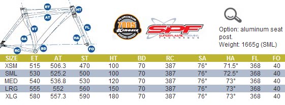 Вес: кадр 1665 г (рассчитывается на 50 см)