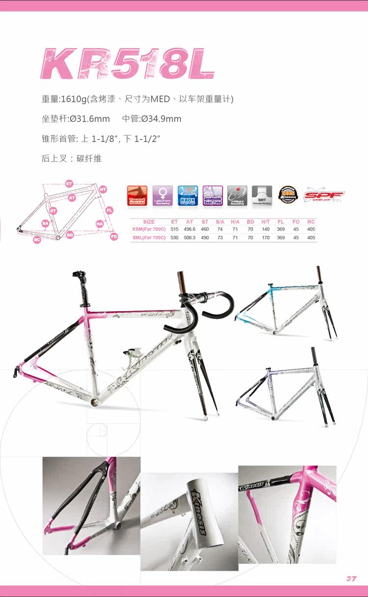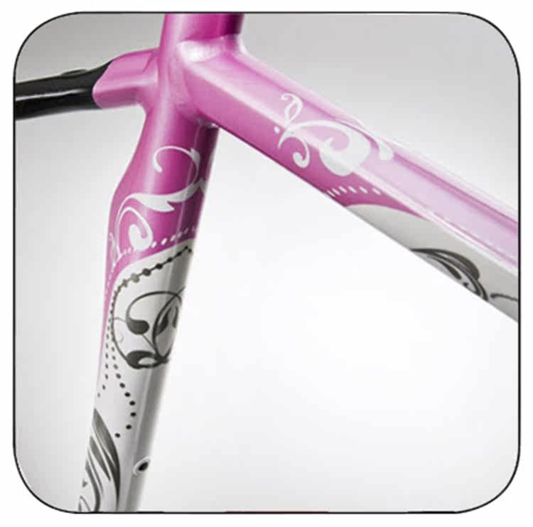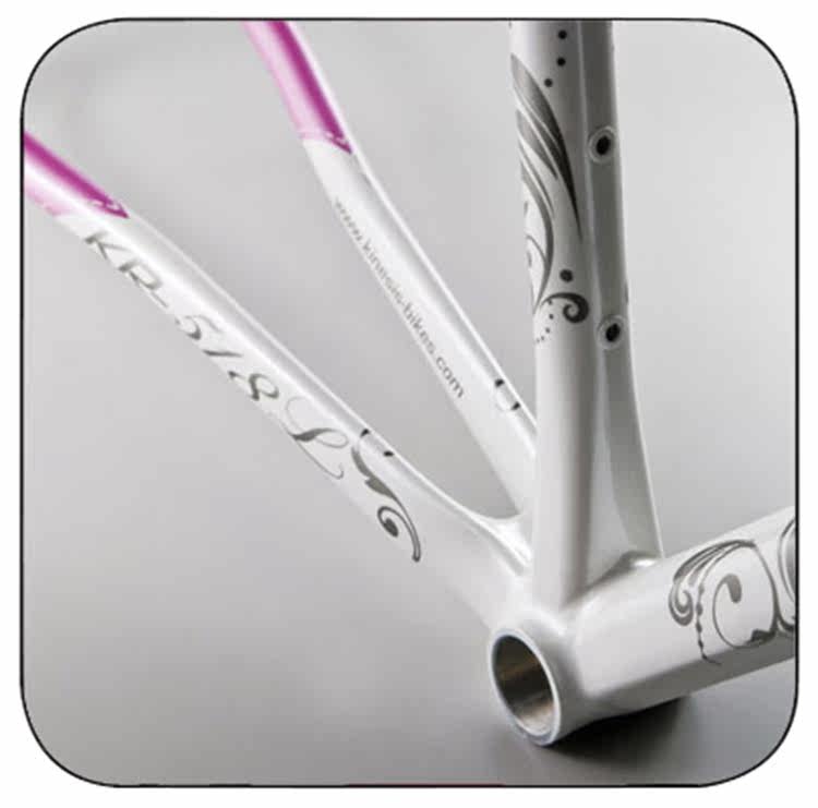 Коническая рулевая труба, модифицированная из KR-518 в эксклюзивную женскую геометрию, повышает стабильность управления и жесткость, квадратная верхняя и нижняя трубы, отлитые из SPF, также повышают жесткость и уменьшают вес, а формованная из SPF аэродинамическая ножеобразная средняя труба (подседельная труба)