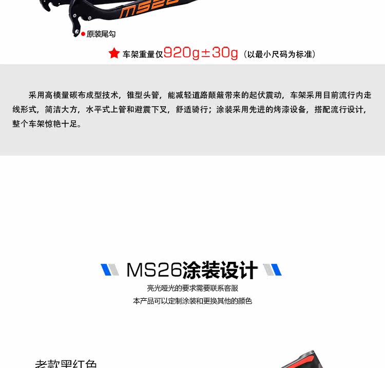 Оригинальная дизайнерская горная сверхлегкая рама из углеродного волокна, 920 грамм