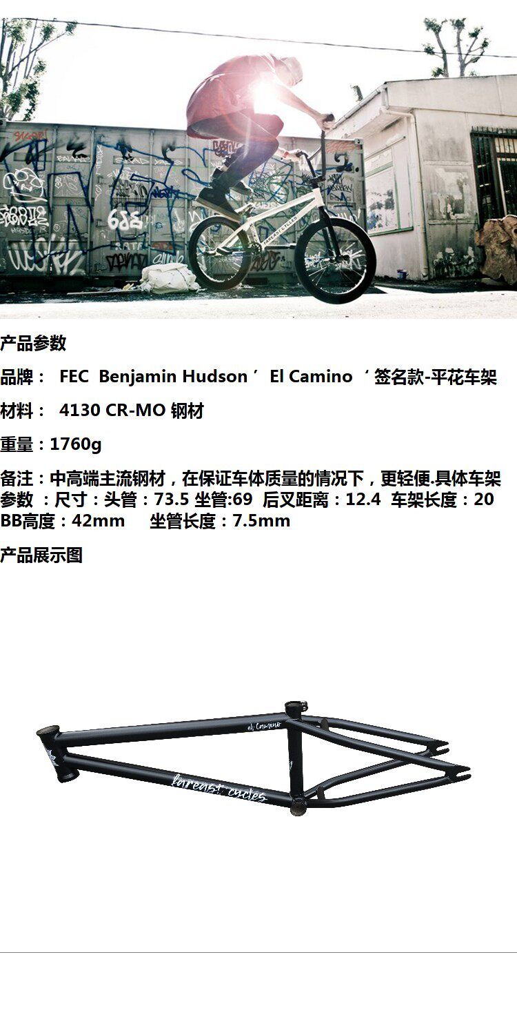 FEC -Benjamin Hudson ’’ ’El Camino’ BMX плоская цветочная рама матовая рама Black