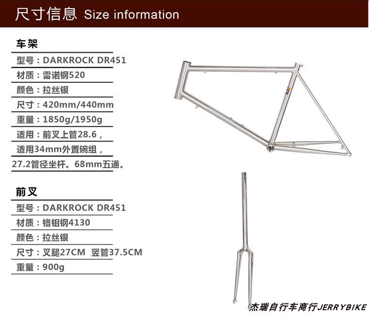 DarkRock DR451 Маленький диаметр колеса рама рама передняя вилка и молибден сталь 22 -дюймовая рама шоссе.