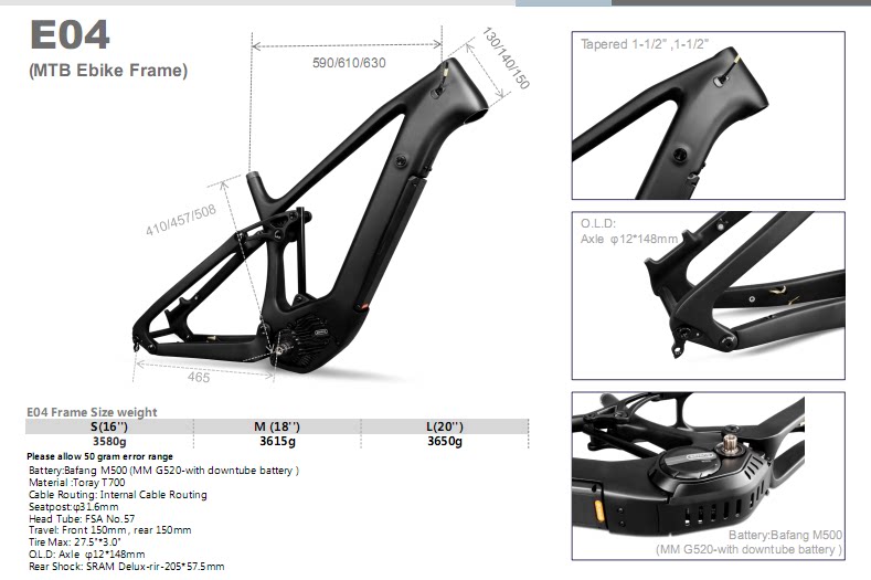 Мотор Bafang As Assists Assists мягкого хвоста карбонового волокна, которая может быть оборудована набором Bafang M510 или комплектом M600, который может быть оснащен новым двигателем Bafang M820. Рама доступен в различных стилях, которые могут быть отправлены с одной рамой или целым транспортным средством. Это может быть продано за рубежом. Для получения дополнительных параметров, пожалуйста, проконсультируйтесь с обслуживанием клиентов.