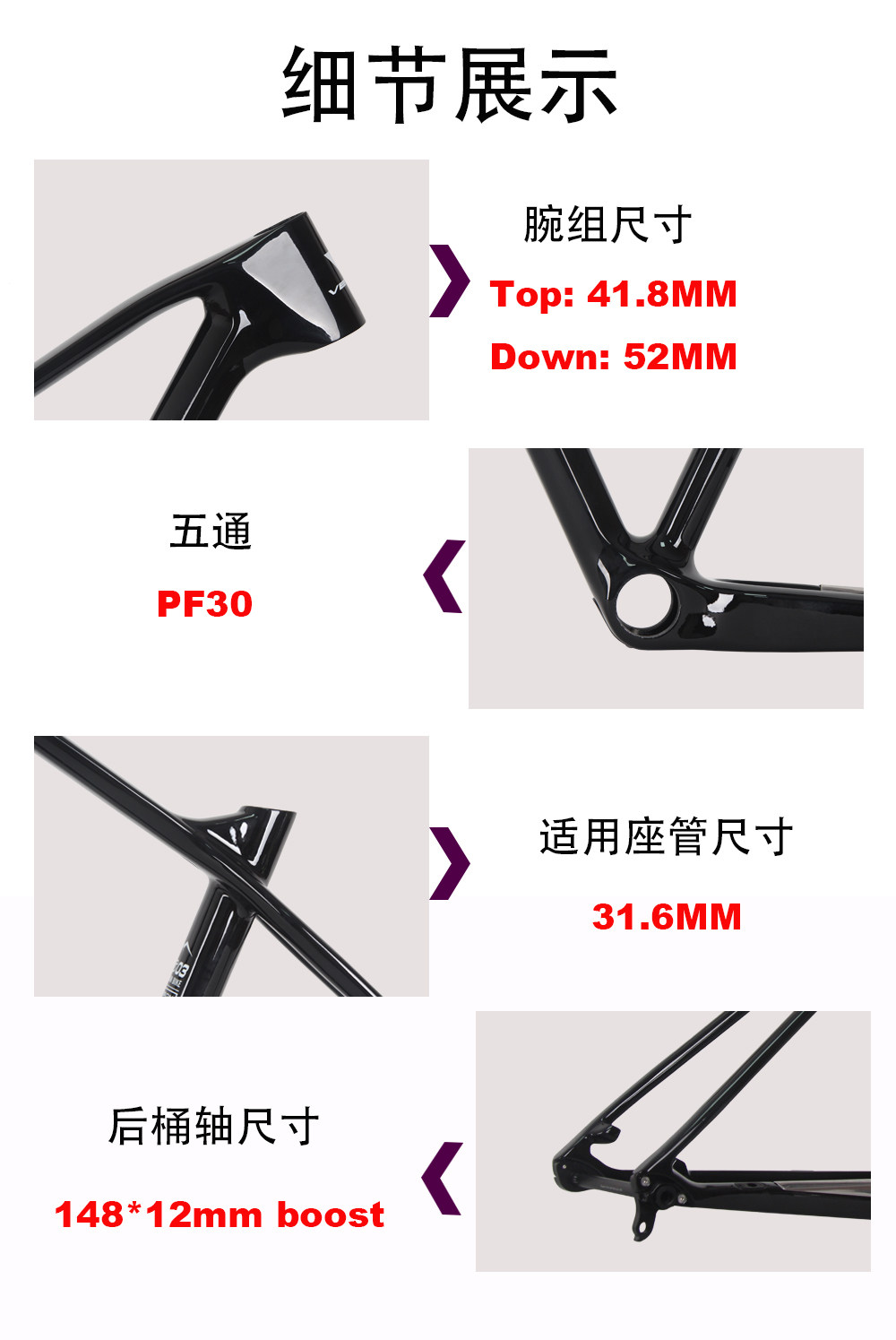 Сверхлегкий внедорожный горный велосипед из углеродного волокна, рама, 148mm
