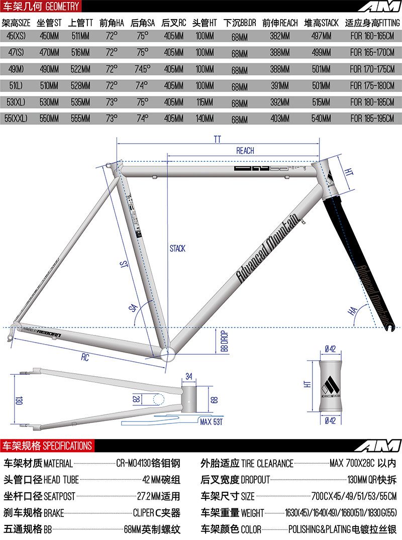 Новая AM CLR6200 Renault 520 Steel 700C Шоу -велосипедная рама стальная рама+карбоновая передняя вилка
