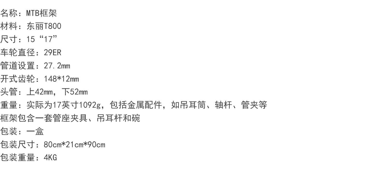 Горная рама из углеродного волокна, 17 дюймов, 29 дюймов, 12mm, 42mm, 52mm