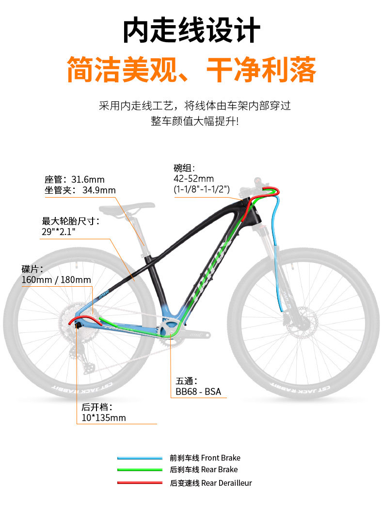 TRIFOX Рама из углеродного волокна с дисковыми тормозами, горный велосипед, 29 дюймов