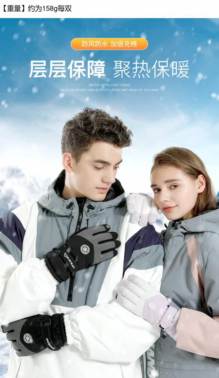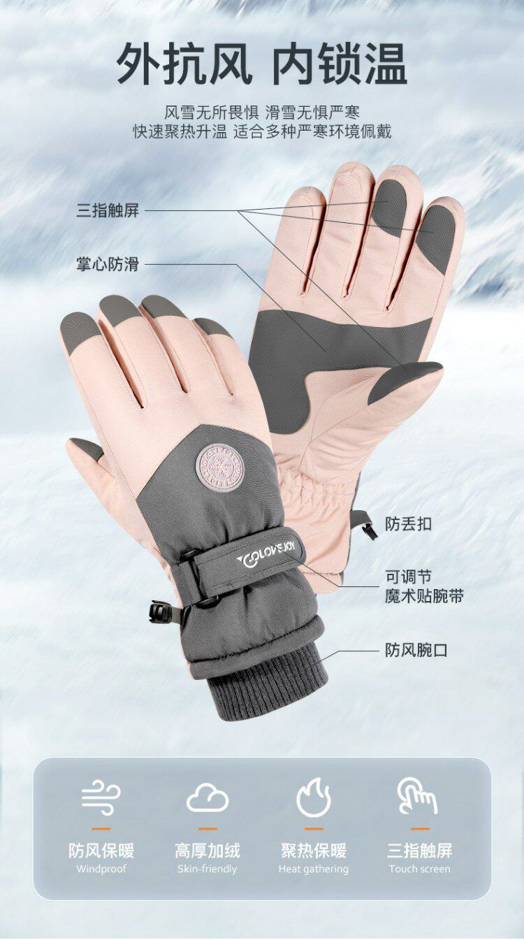 Лыжные перчатки, водоотталкивающий нескользящий флисовый ветрозащитный зимний дорожный удерживающий тепло комплект