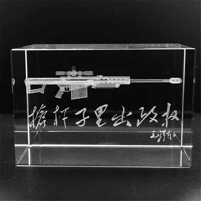 3D Трехмерная модель пистолета, блокирующего кристал, с пистолетом Мао Цзэдун Мао Мао из пистолета в хрустальных внутренних орнаментах в кристалле в кристалле