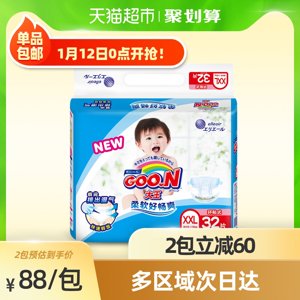[Официальный] King Circle Pattipus Diapers Vitamin E XXL32 Таблетки/Сумка Ультра -Тингарная Моча мочи не влажная и дышащая.