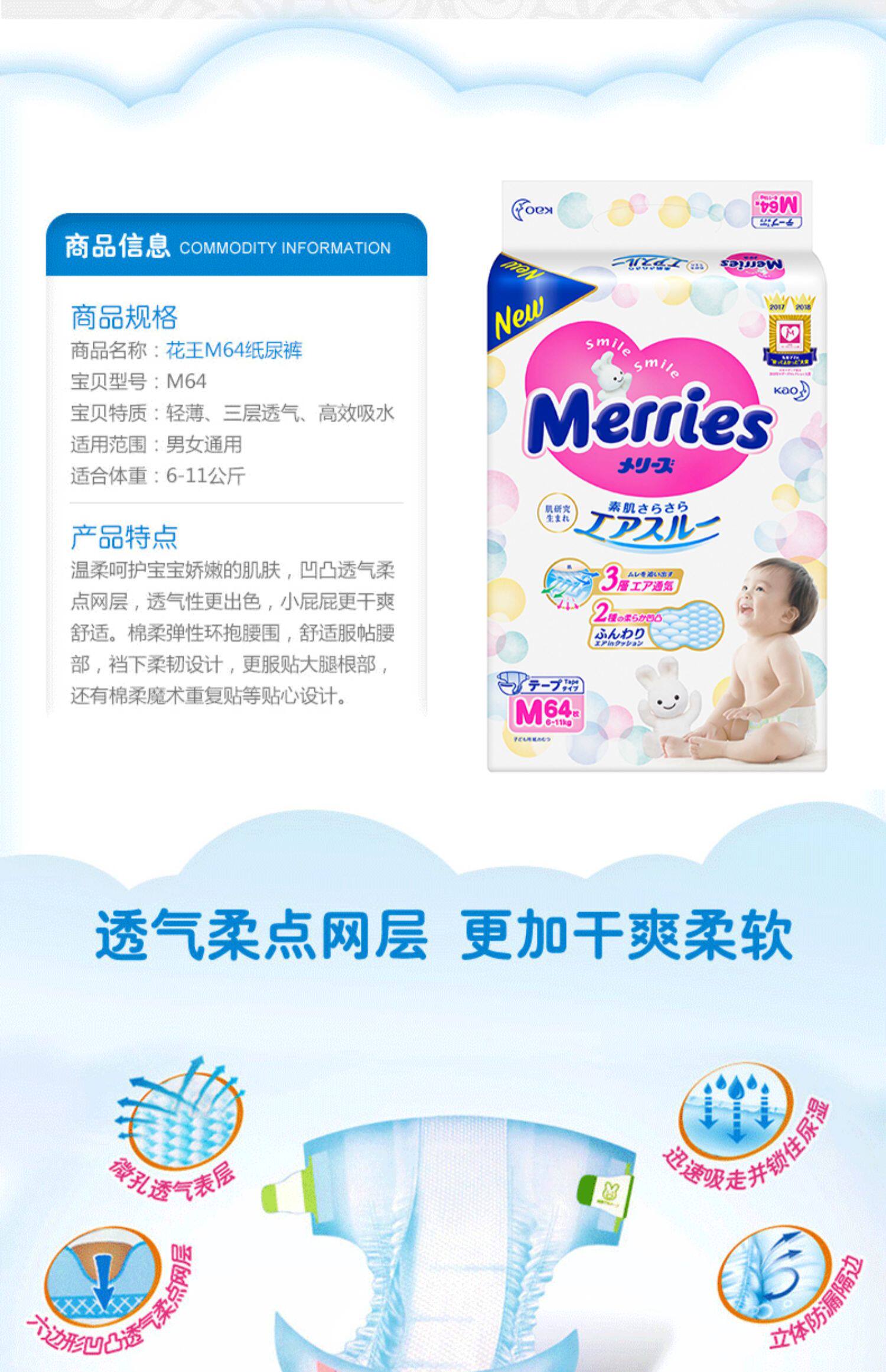 Японский цветок Diabwear M64 Baby Ultra -Thin дышащий сухой освежающая моча, подгузники, подгузники, подгузники M код