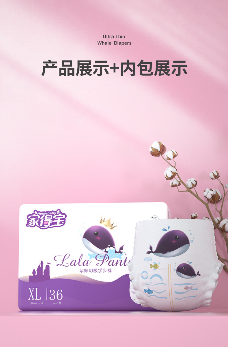 家得宝 Детские подгузники Purple Whale, ультратонкие дышащие детские подгузники с кольцом на талии для мужчин и женщин, выбор размера S/M/L/XL