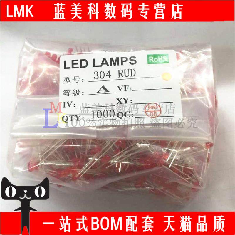F3 3 мм Красная Красная Красная светлая светодиодная светодиодная светодиодная диода длинные футы (1000)
