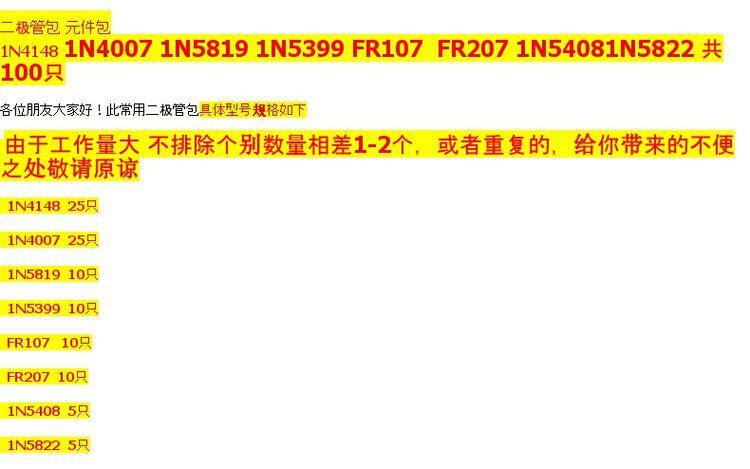 Прямая штекерная диодная сумка 1N4148 1N4007 FR107 1N5408 1N5822 и 8 видов 8 видов, в общей сложности 100 видов