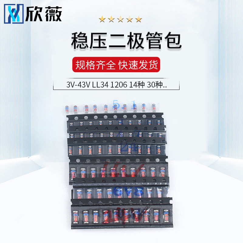 0,5W Стабилизация напряжения Пакет 1/2 Вт Компонентный пакет ZMM Patch 3V-43V LL34 1206 14 видов из 30 видов