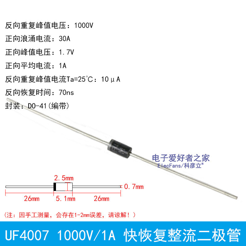 (20) UF4007 1A/1000V Express Recode Do-41 Электронные компоненты выпрямителя