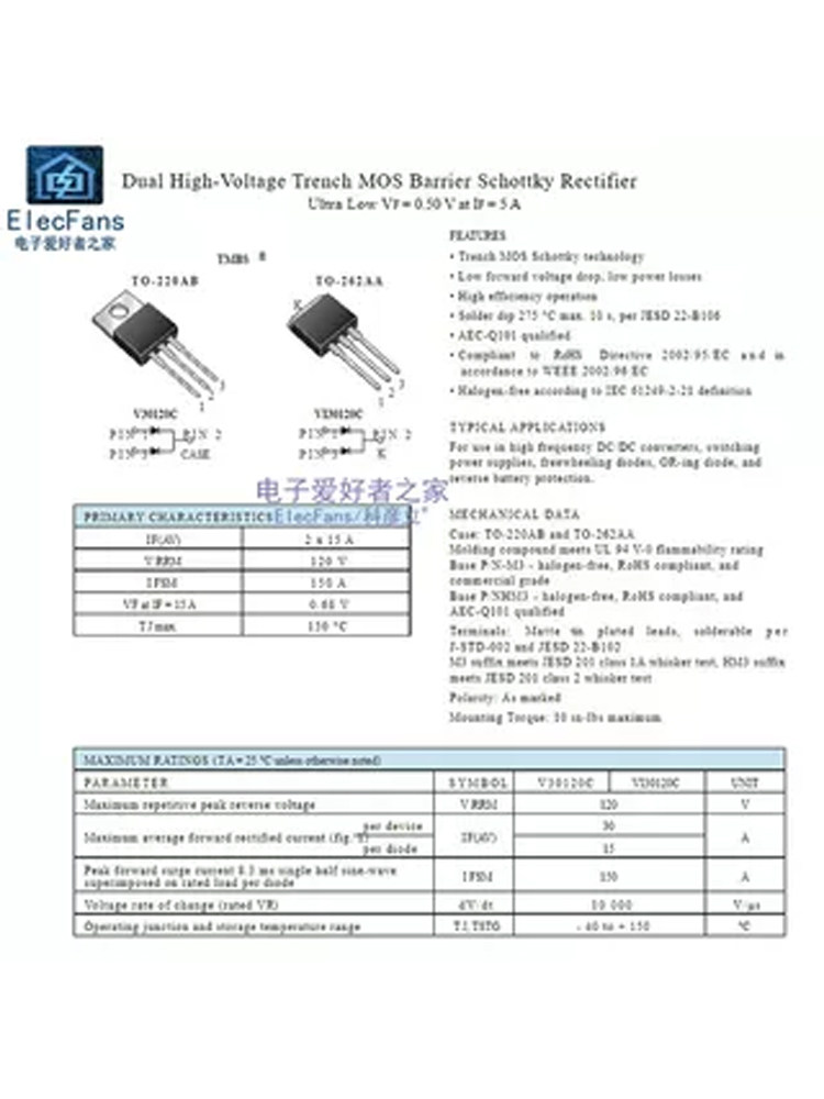 Оригинальный новый V30120C 30A 1200V Direct Plug To-220 Schottky Diode выпрямитель