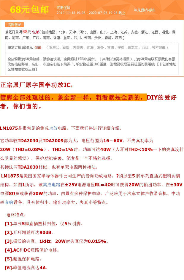 [Accessesies] Оригинальный аудио -усилитель IC LM1875T Гарантия подлинная разборка