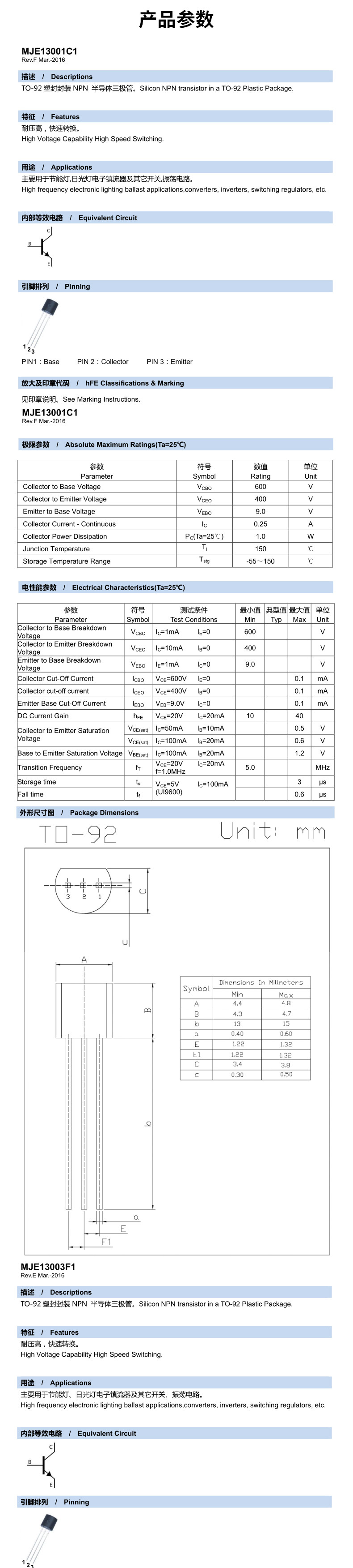 | Цвет: | MJE13001 TO-92 NPN (20), MJE13003 до 126 NPN (10), MJE13005 TO-220 NPN (5), MJE13007 TO-220 NPN (5), MJE13003 TO-92 NPN (20) |