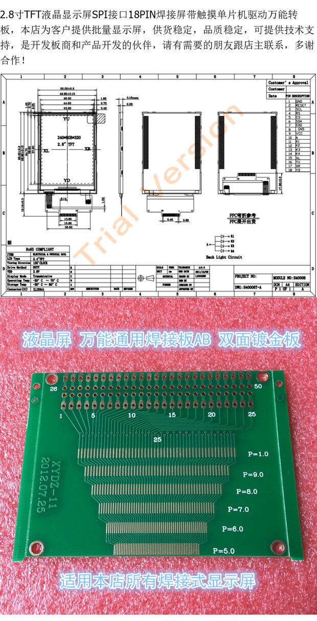 2.8 -INCH TFT LCD -дисплей интерфейс SPI 18PIN Сварка сварка ремень прикосновение односполучающая машина Универсальная плата поворота Универсальная плата поворота
