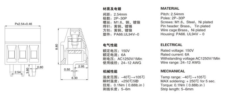 DG308 KF120 2,54 мм Spirit Vint PCB Терминал 2P/3P/4P 2,54