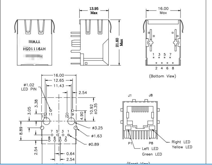 HY911105H RJ45 сетевой сеть. Фильтр трансформатора 8P8C Сетевой порт RJ45 лампа