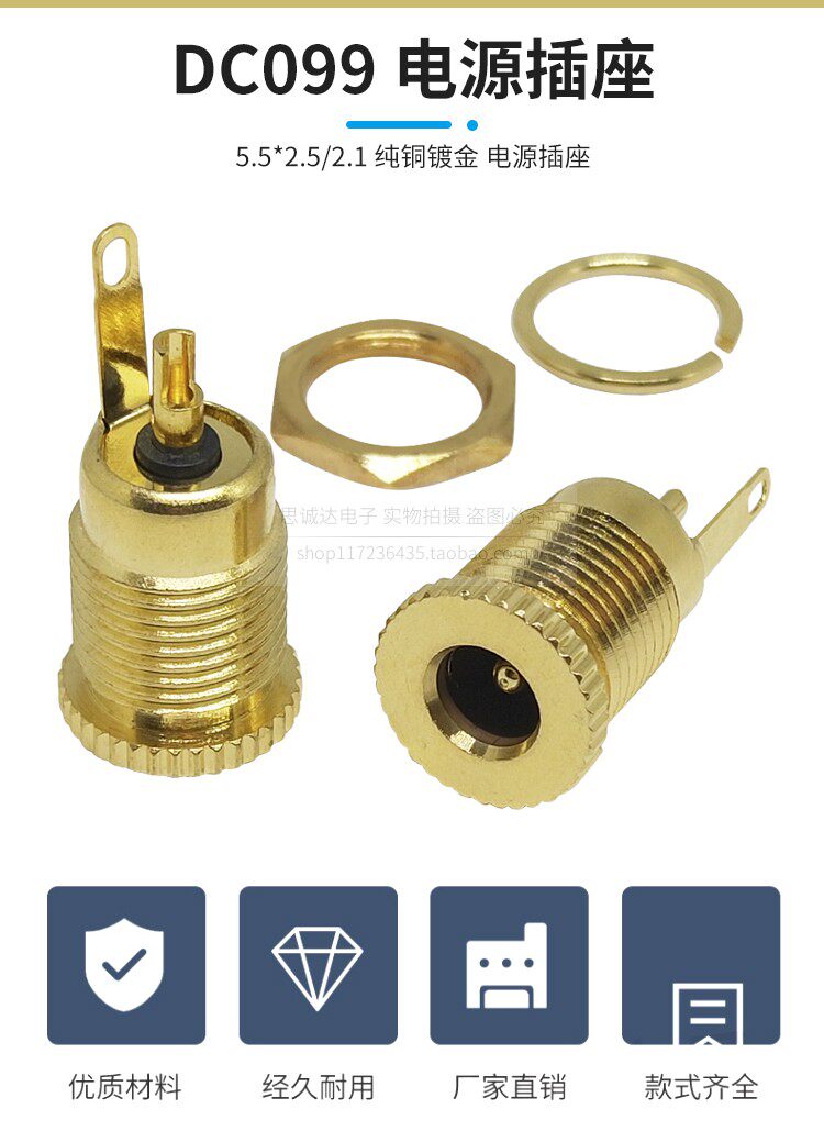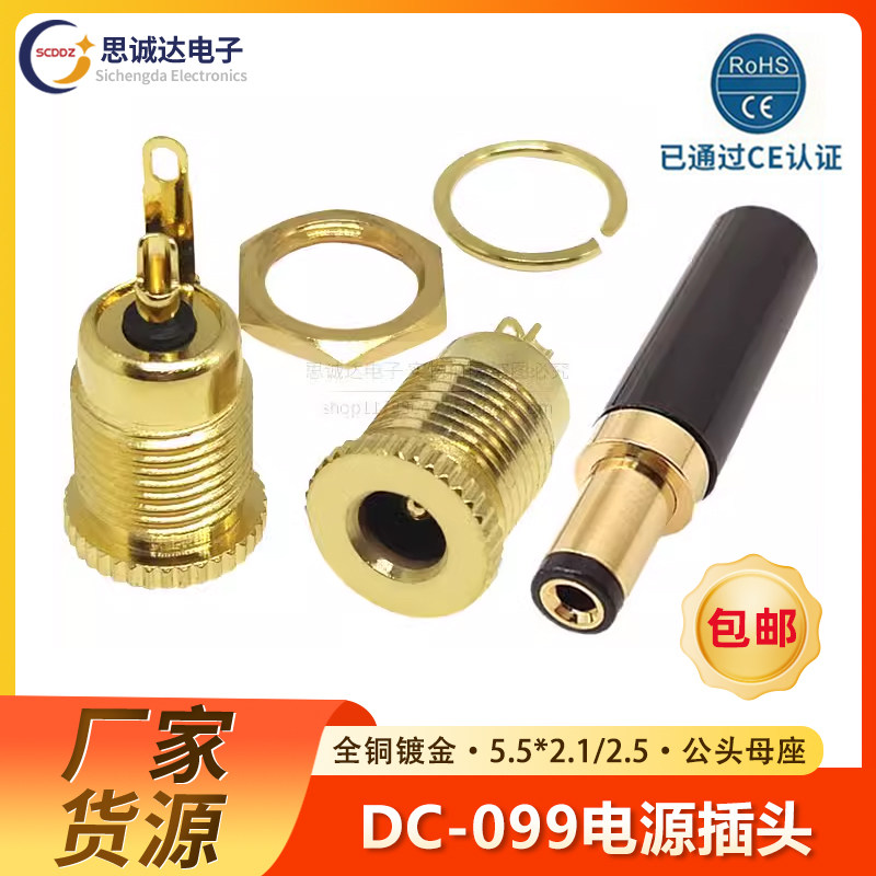 Позолоченная розетка из чистой меди DC-099 5,5*2,1 мм, сильноточная, термостойкая металлическая зарядная база