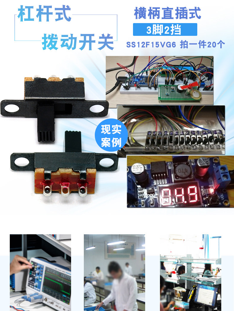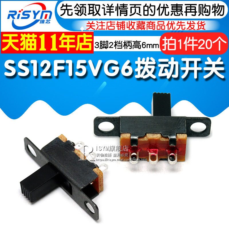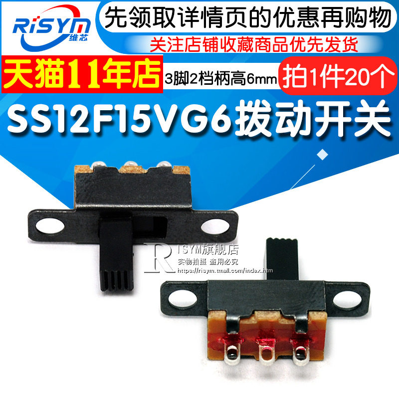 Risym SS12F15VG6 Горизонтальная ручка с прямым направлением 1P2T Переключатель с использованием 3 коннала и 2 высоты шестерни 6 мм