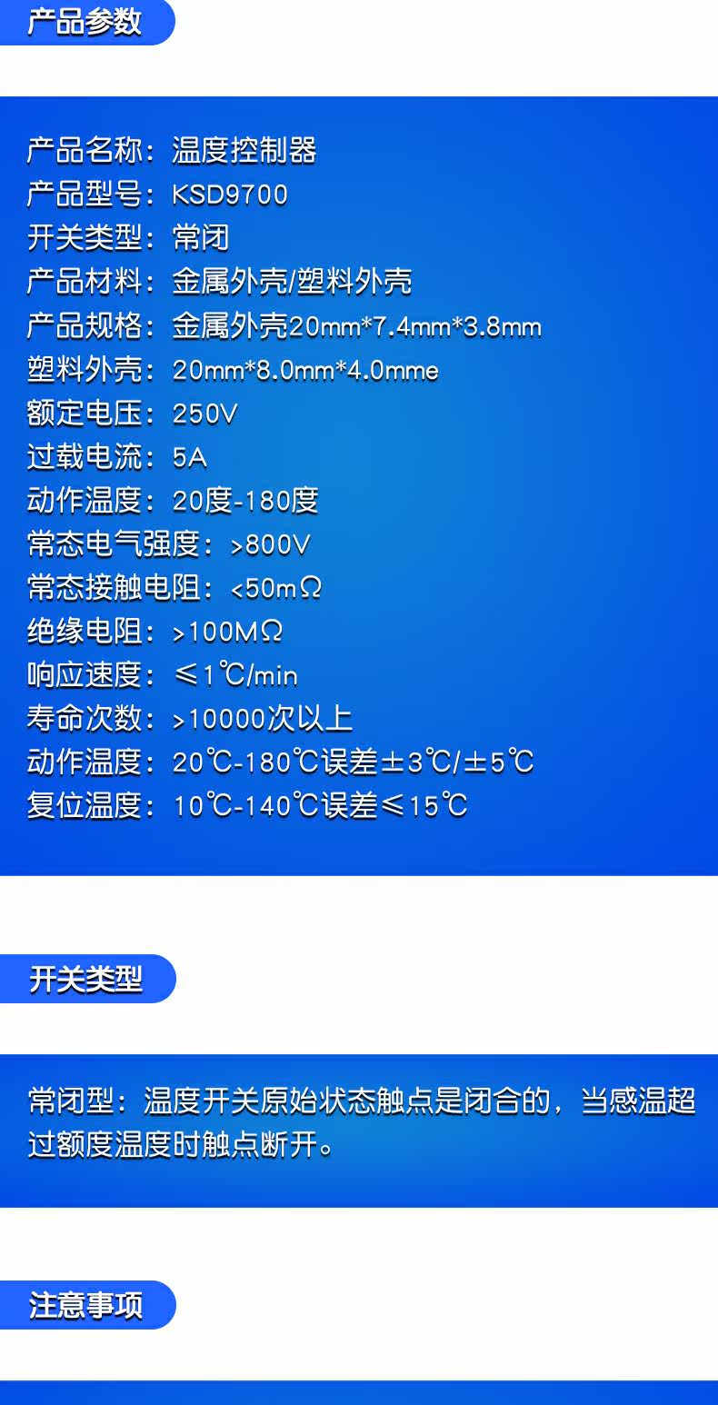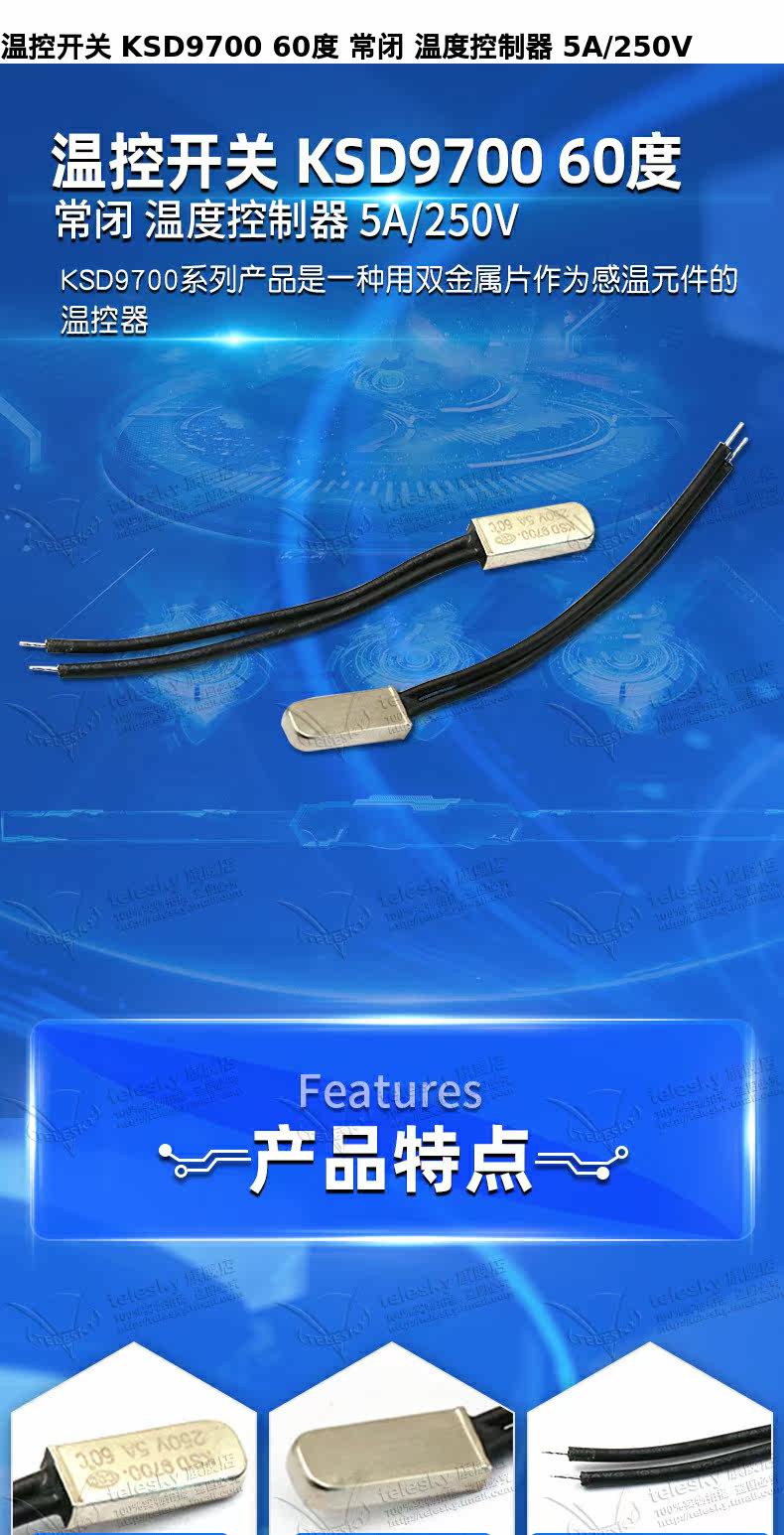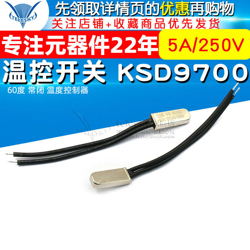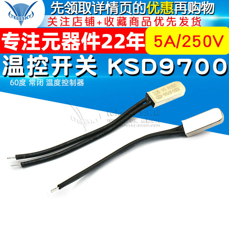 Переключатель управления температурой KSD9700 60 градусов Обычно закрытый контроллер температуры 5A/250 В
