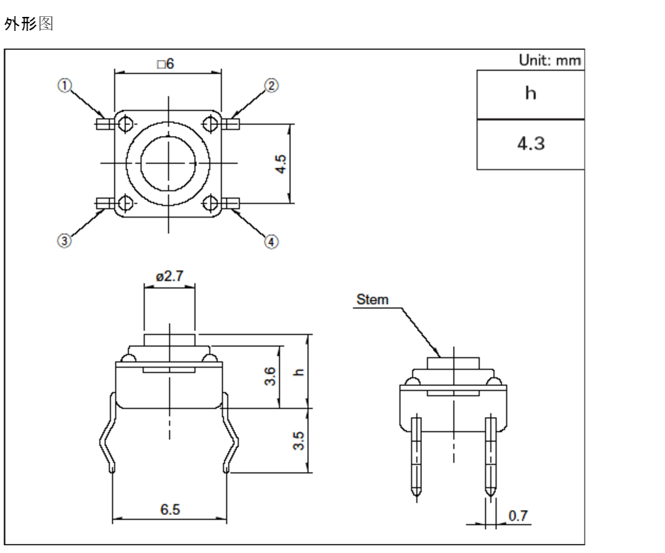 SKHWARA010 Япония Альп Альп 6*6*4,3 Трипст в переключатель водонепроницаемых и пылепроницаемых 4 -футовых клавиш