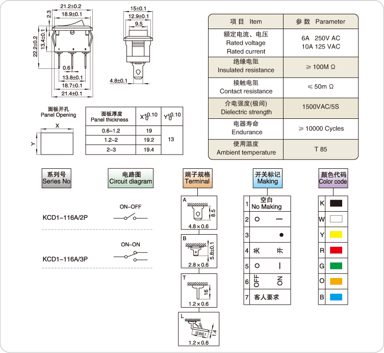Переключатель переключателя типа красного суда 3-контактный 2-Gear KCD1-101 Изогнутый переключатель