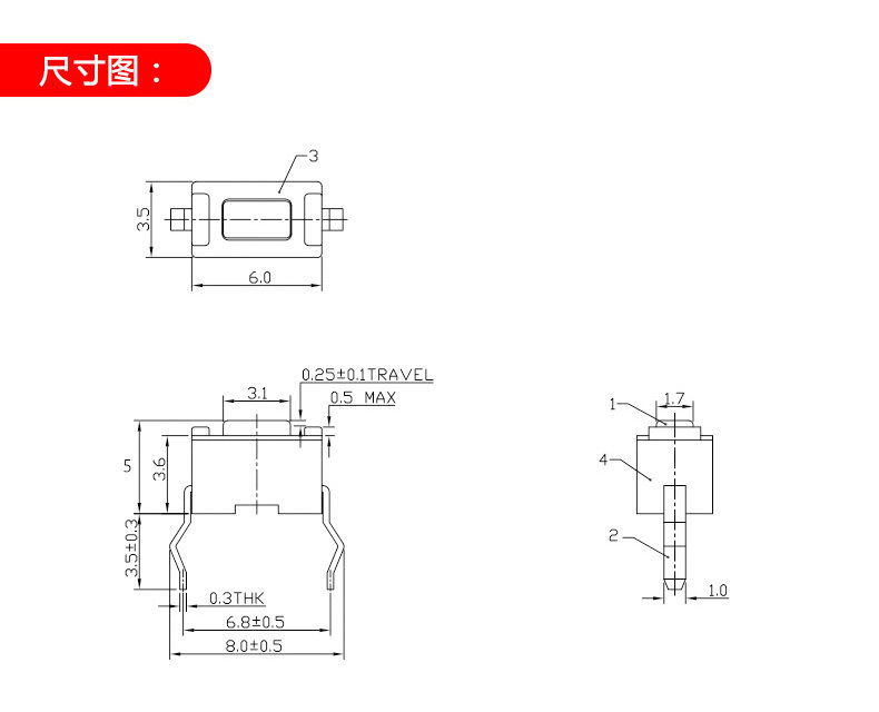 Непосредственно вставьте черный 3*6*5, чтобы касаться кнопки переключателя /резистентной температуры и защиты окружающей среды (50)
