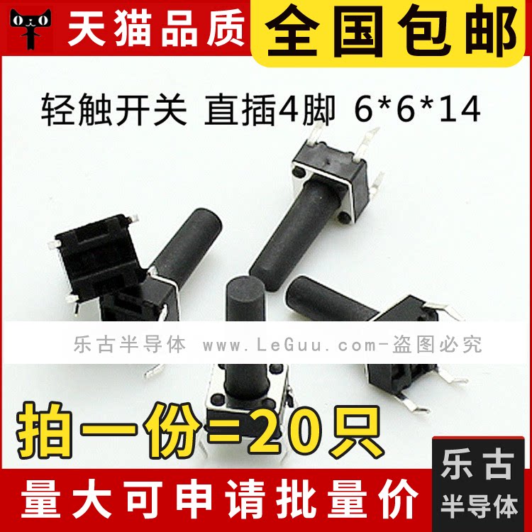 БЕСПЛАТНАЯ ДОСТАВКА (20) Коснитесь переключателя 6 на 6 на 14 вертикальный 4 -пискочный заглушка -IN 6*6*14 Микро коммутатор