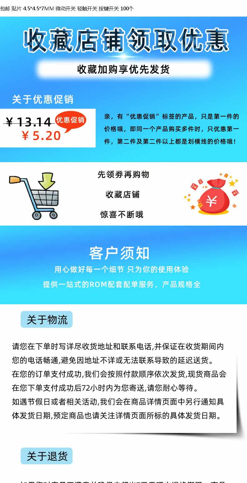 Переключатель, 7mm, 100 шт