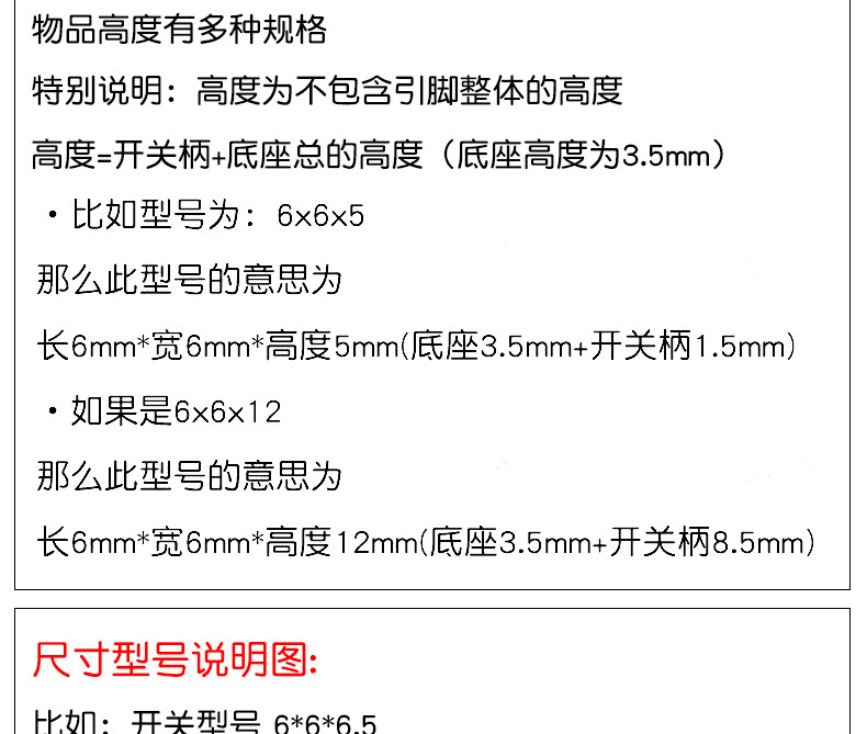 | Цвет: | Вертикальный 6*6*5 мм (50 штук), Вертикальный 6*6*6 мм (50 штук), Вертикальный 6*6*7 мм (50 штук), Вертикальный 6*6*8 мм (50 штук), Вертикальный 6*6*10 мм (50 штук), Вертикальный 6*6*11 мм (50 штук) |