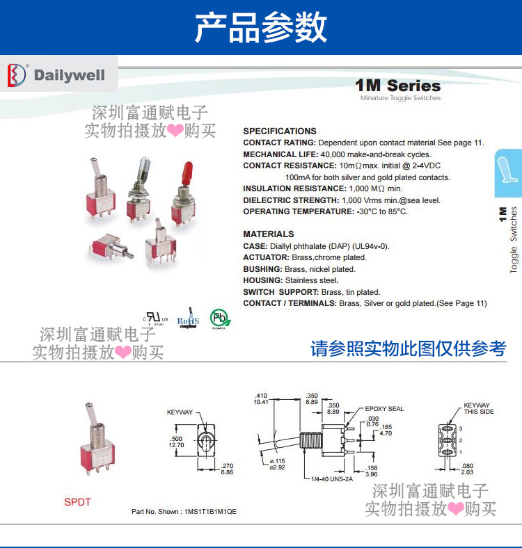 台湾德利威Dailywell Переключатель переключателя Q11 3 -Фута 3 штифта для переключателя кнопки кнопки «Улича