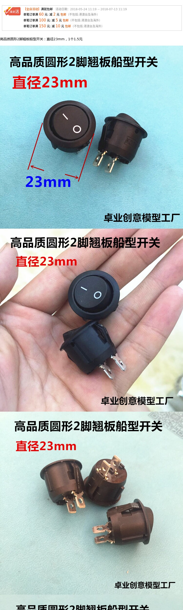 Качественный круглый переключатель, диаметр 23мм, 23mm