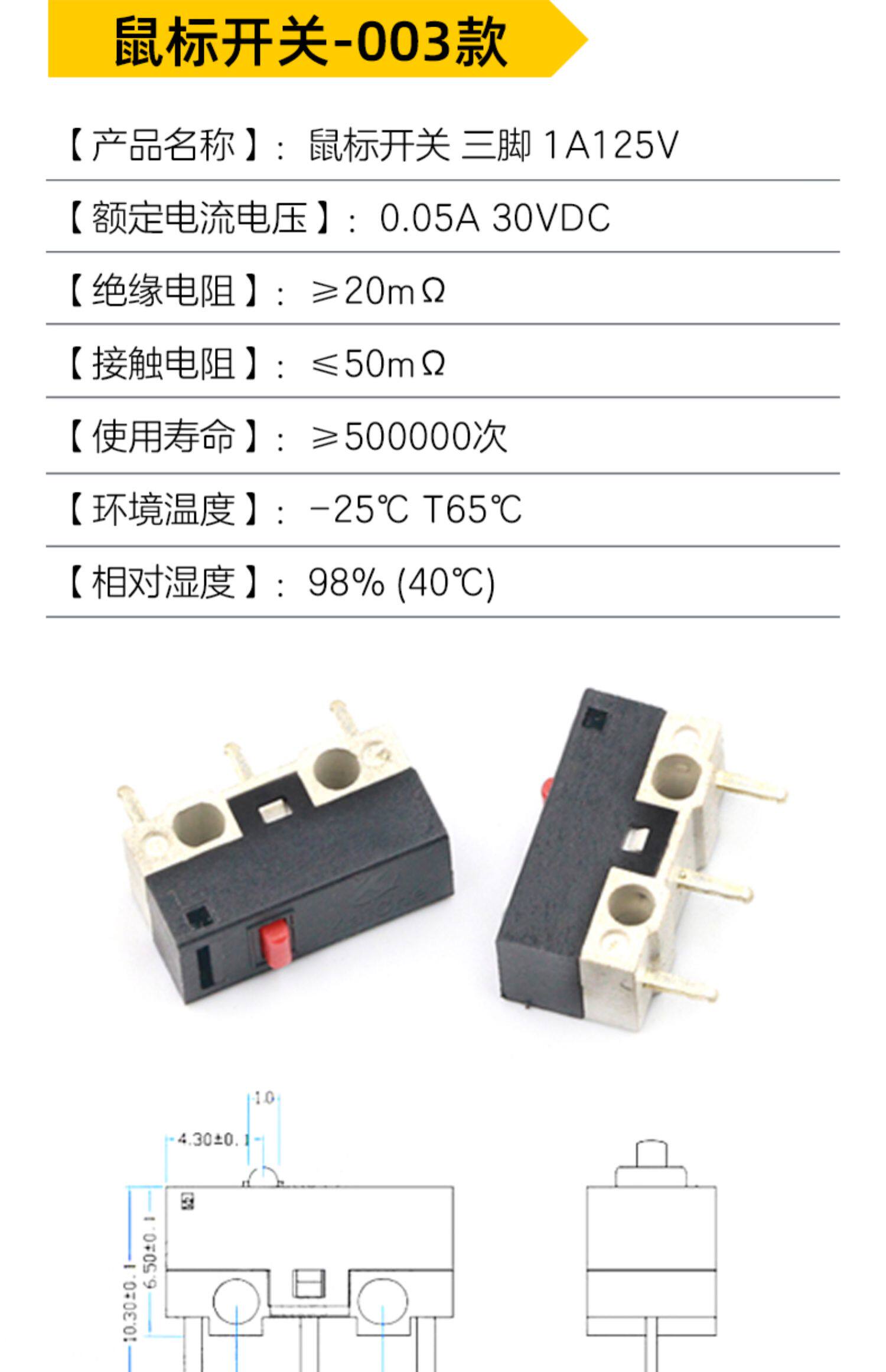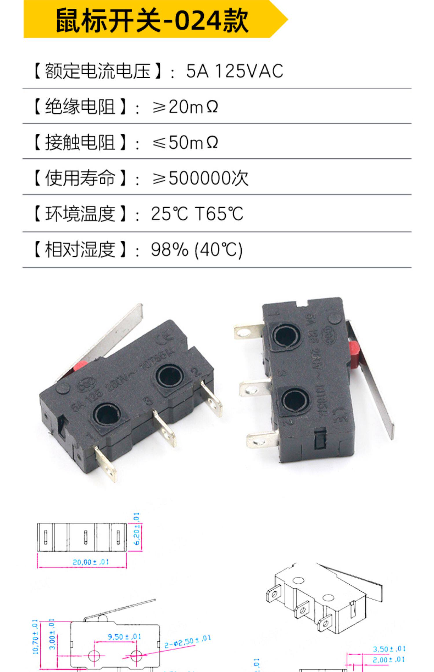 Переключатель мыши с тремя грубыми ручками нажмите на левую и правую изгибающие ноги слегка движущийся переключатель 1a 125Vac (10)