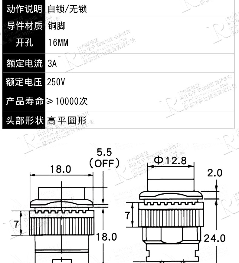R16-503 кнопок переключатель кнопки сброса