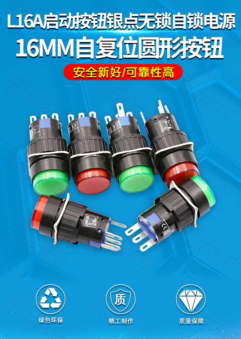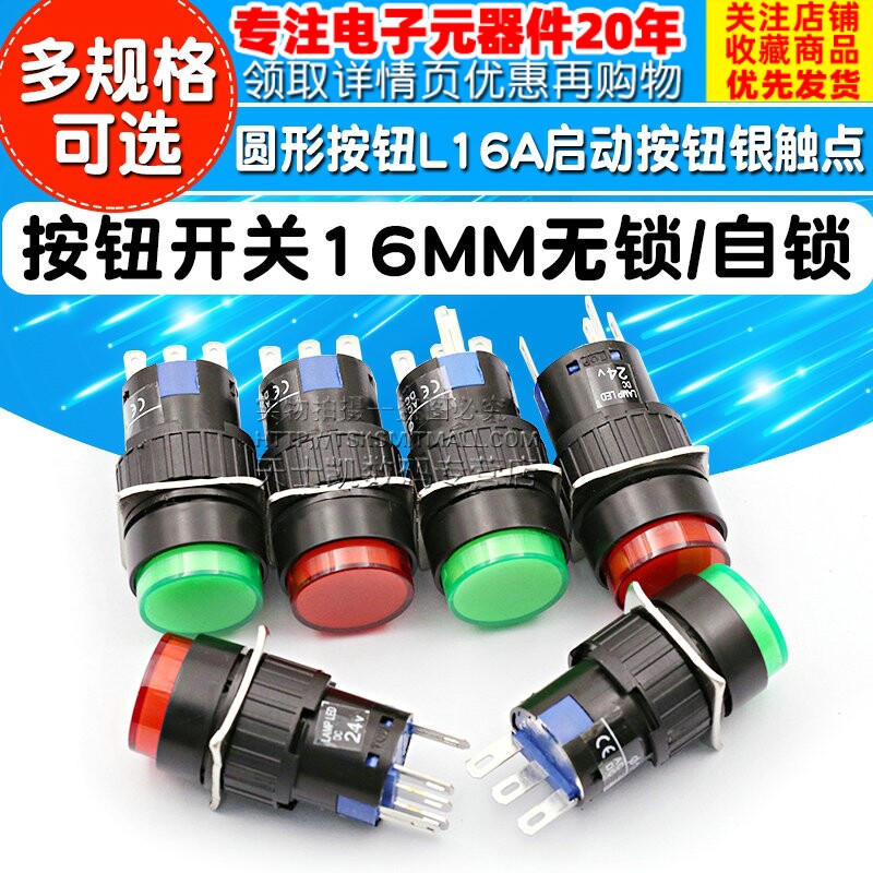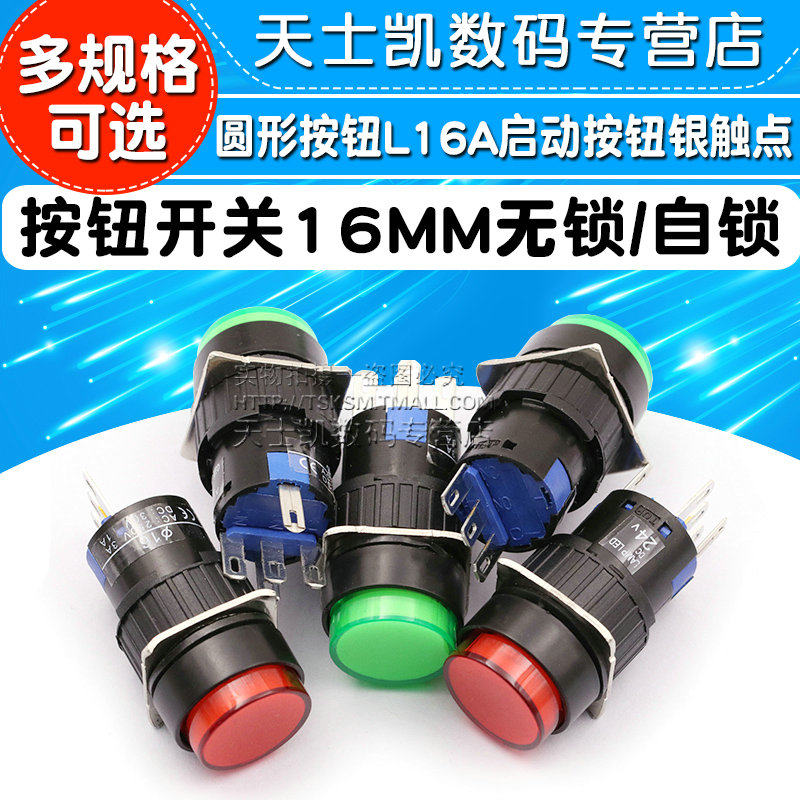 Переключатель кнопки 16 мм с световой самостоятельной кнопкой L16A кнопка запуска кнопка серебряной точки без блокировки Self -lock