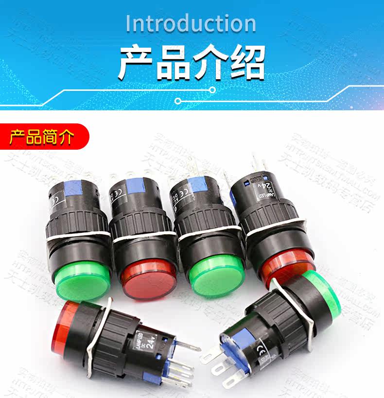 Кнопка, переключатель с подсветкой, круглый блок питания, 16мм