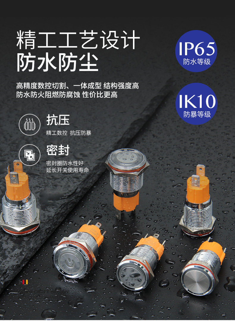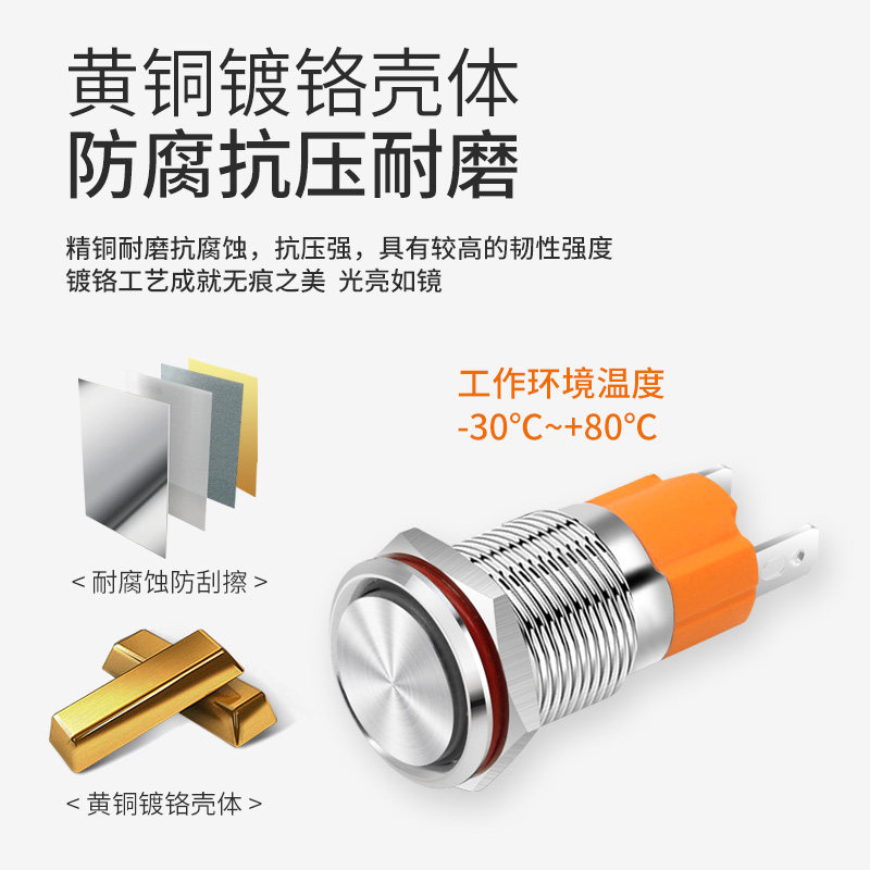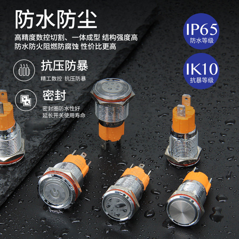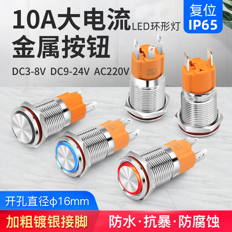 Металлическая кнопка, мегафон, водонепроницаемый переключатель с подсветкой, 16mm, 220v