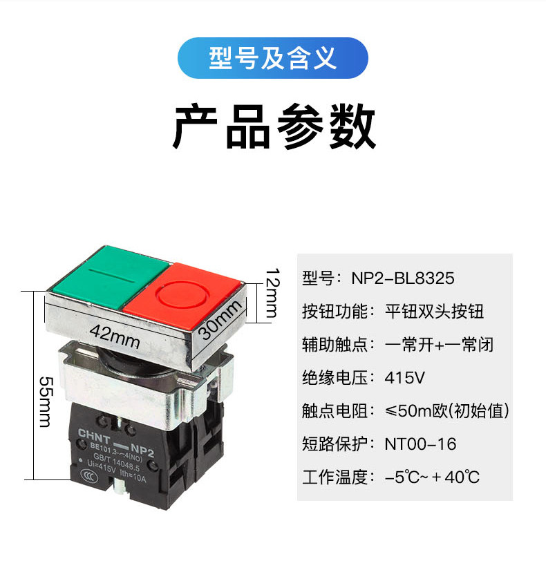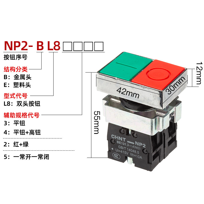 Zhengtai кнопка переключатель кнопки двойной головы np2-bl8325 часто открытая кнопка NP2-Bl8425 красная и зеленая
