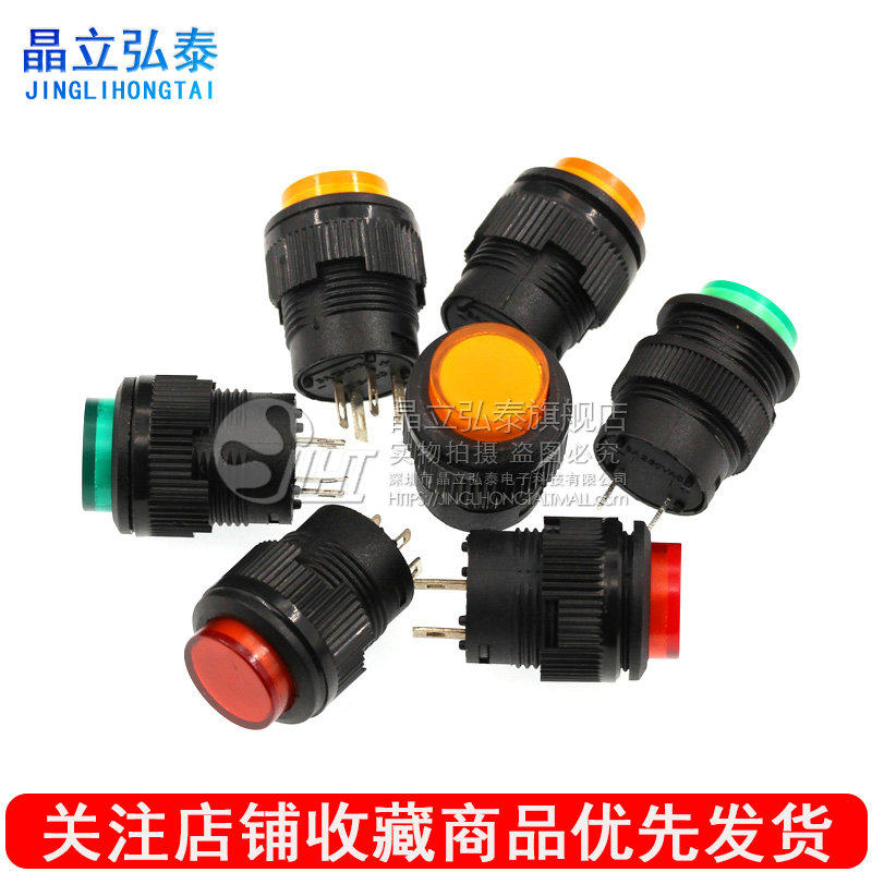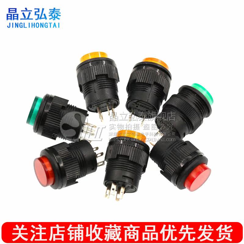 Кнопка, зеленый переключатель с подсветкой, 16mm