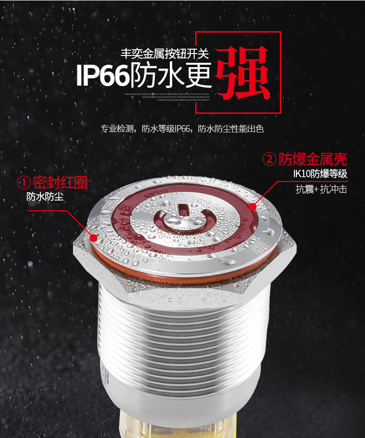 Металлическая кнопка, водонепроницаемый круглый переключатель с подсветкой, 22mm
